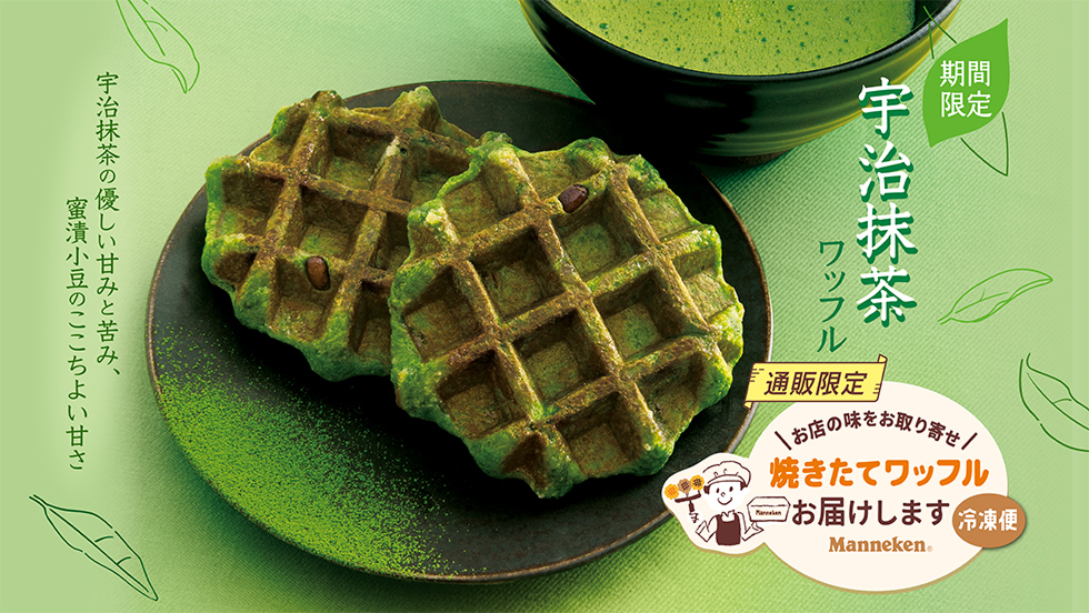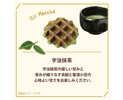 優しい甘みと苦みのバランスの良い宇治抹茶を使用。 蜜漬け小豆と合わせ焼き上げることで、小豆の上品な甘さで抹茶の甘みや苦みを引き立たせた春限定のワッフルです。