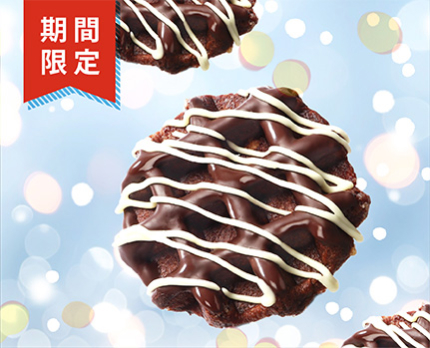 ベルギーチョコチップが溶け込んだ生地にチョコとホワイトを重ね濃厚で華やかに仕上げました。濃厚なチョコレートを楽しめるクリスマス期間限定商品です。
