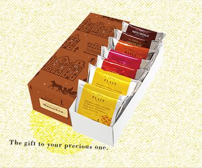 | 小麦粉(国内製造)、準チョコレート、砂糖、乳等を主要原料とする食品(植物油脂、発酵バター、その他)、卵、マーガリン、バター、牛乳、還元水あめ、イースト、蜂蜜、食塩/香料、乳化剤、酵素、ビタミンC、(一部に卵・乳成分・小麦・大豆を含む) | |