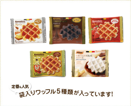 通販限定アソートセット。ベルギーの伝統製法で焼きあげた1番人気の「プレーン」をはじめ、期間限定品を含めた厳選5種をセットにしました。