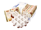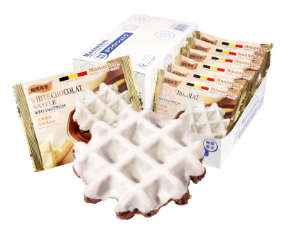 ベルギー産「パールシュガー」が特徴マネケンはベルギー産だけを使用し、粒状のパールシュガーは焼いても内部まで溶けきらないのが特徴で、ワッフルの表面ではとろけてカラメル状になりカリッとした歯ごたえを、内部では粒が残り独特の舌触りを生み出します。 |